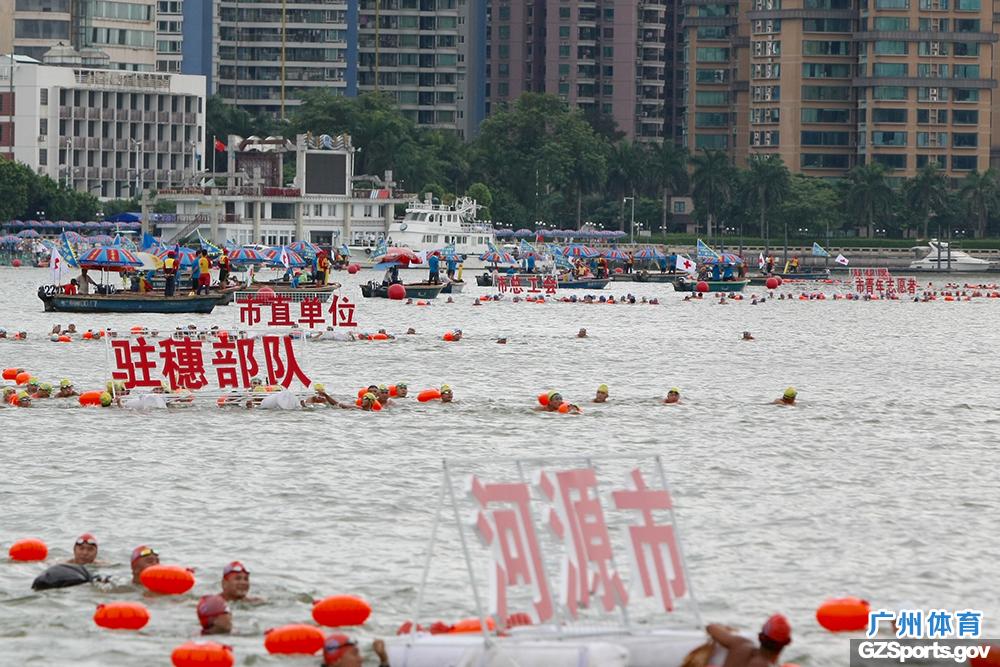 昨天(31日)下午,2015年广州横渡珠江活动在中大码头至二沙岛星海音乐厅对出的珠江河段举行。来自广州、佛山、河源、东莞、肇庆、清远等6市及驻穗部队,共2000名游泳健儿组成40个方队成功横渡珠江。广州市市长陈建华,肇庆市市长赖泽华,佛山市副市长郭文海参加所在城市方队横渡珠江,并分别接受了媒体采访。广州市领导陈国、蔡朝林、余明永,河源市副市长朱蔚蔚,清远市副市长陈建华(女),以及东莞、中山市政府、省直机关、驻穗部队有关领导参加活动。广州市政府秘书长潘建国主持活动启动仪式。